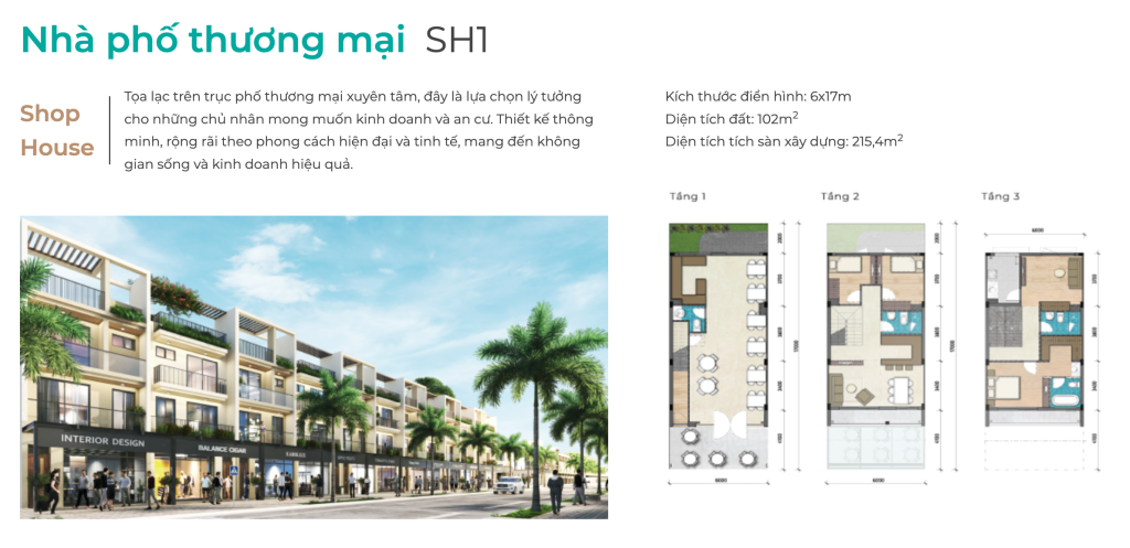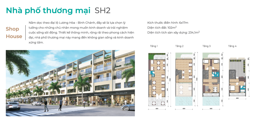 • Shophouse (LG 60m): 90m xây dựng 1 trệt 3 lầu